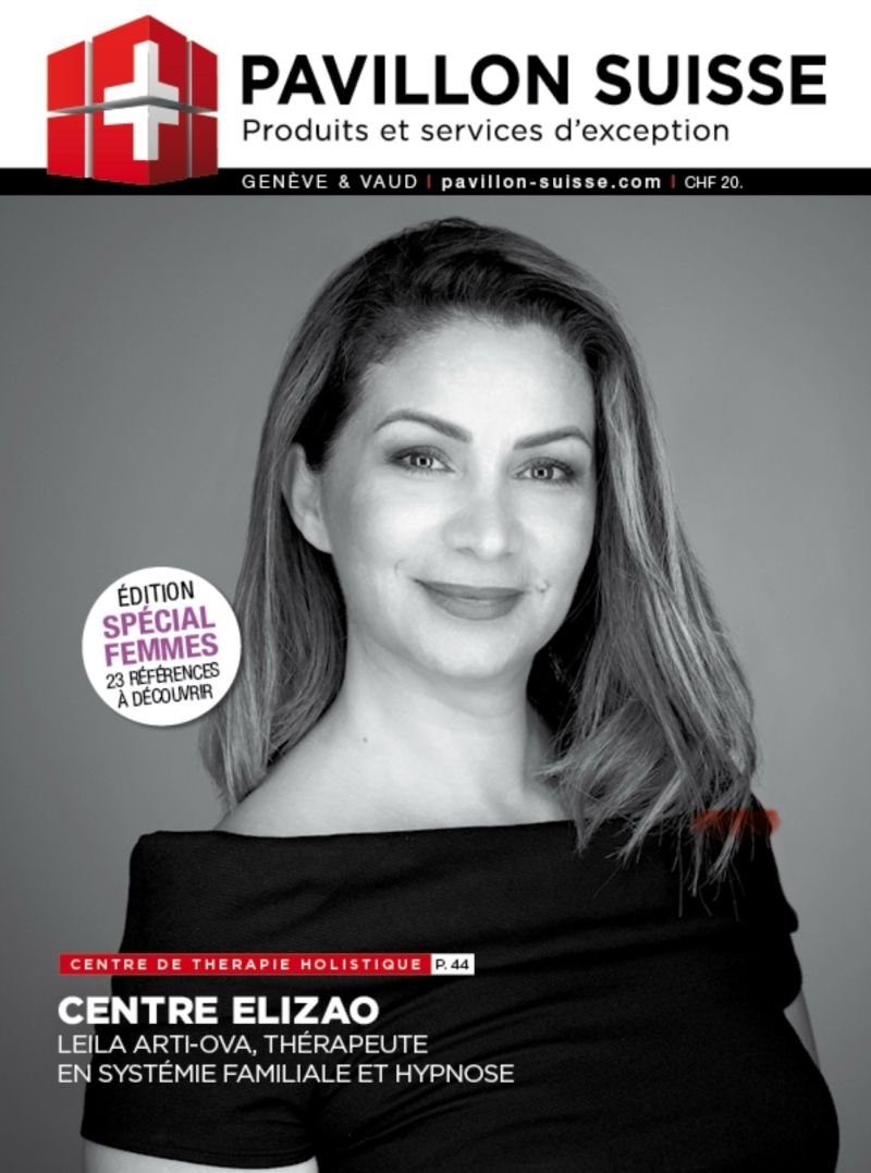Dans le magazine édition « spécial femmes » (Genève / Vaud), publié dans une édition intemporelle, j’ai eu le plaisir de vous présenter Leila Arti-Ova, directrice du centre Elizao, thérapeute en systémie familiale et hypnose.